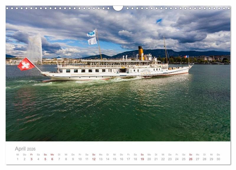 April: Schaufelraddampfer auf dem Genfer See vor Genf