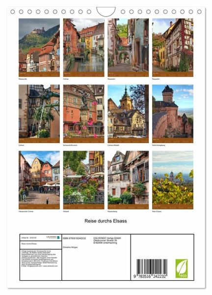 Die wunderschönen kleinen mittelalterlichen Städtchen im Elsass sind immer eine Reise wert. Burgen, bunte Fachwerkhäuser, kleine Geschäfte , Cafés, sowie viele schöne Wege in den Weinbergen rund um die kleinen Orte lassen die Zeit stillstehen. In diesem Kalender sind einige traumhafte Impressionen aus dieser schönen Gegend eingefangen.
