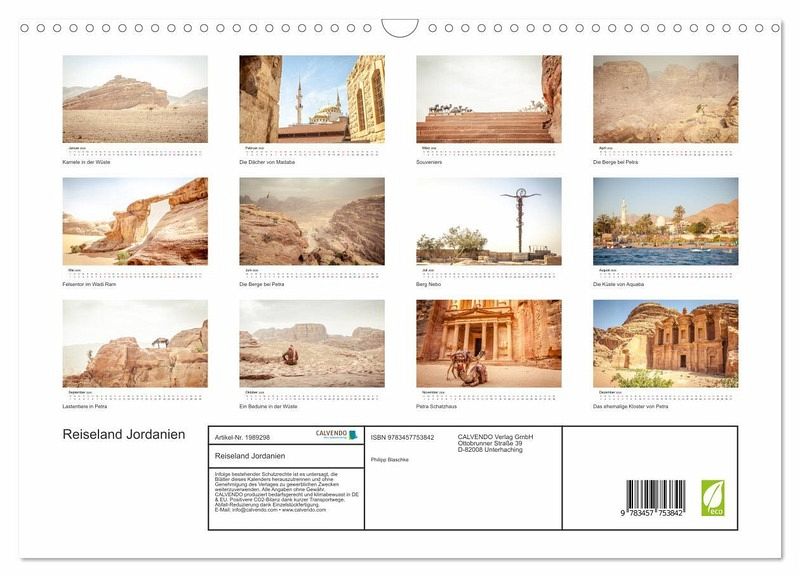 QUALITÄT - Hochwertiger Fotokalender mit 12 wunderschönen Motiven auf lichtbeständigem Bilderdruckpapier, robuste Spiralbindung mit Aufhängebügel.NACHHALTIG - deutliche Abfallreduzierung durch bedarfsgerechte Einzelstückfertigung, umweltfreundliches FSC-zertifiziertes Papier, Produktion in Deutschland, klimabewusste Logistik.PERFEKTES GESCHENK - Kalender für Freunde und Familie, für Kinder und Erwachsene, jung und alt, zu Weihnachten, Geburtstag oder zwischendurch.VIELFALT - Bildkalender in verschiedenen Formaten, z.B. DIN A5, DIN A4, DIN A3 sowie DIN A2. Ob Naturmotiv, Gemälde oder Fotos, ideal für ein persönliches Wohlfühlambiente.Eine Rundreise durch das unterschätzte Reiseland Jordanien von Autor(in): Philipp Wilde