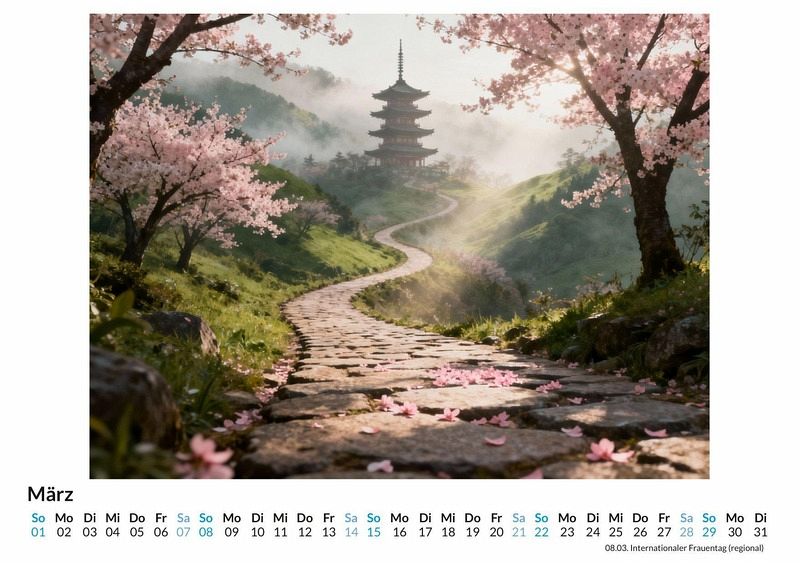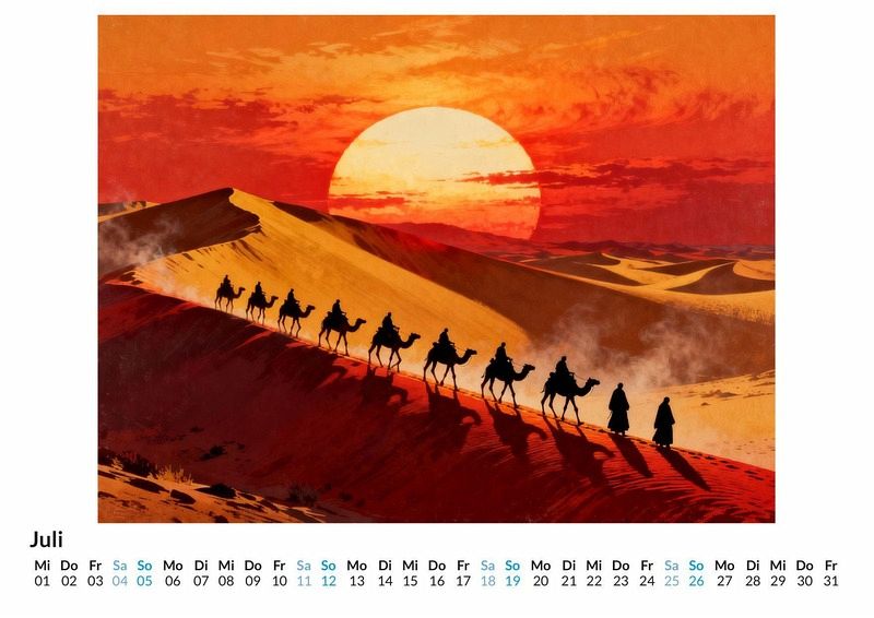 Manche Reisen beginnen nicht am Bahnhof, sondern im Kopf. Sie führen an Orte, die auf keiner Landkarte verzeichnet sind, und wecken doch das Fernweh. Dieser Kalender ist eine Hommage an genau diese Art des Reisens, eine Sammlung von Zielen, die nur in der Fantasie existieren. Dieser Kalender ist optimal für: * Liebhaber von grafischer Kunst und dem Charme vergangener Reiseepochen. * Alle, die ihre Wände mit fantasievollen und stilvollen Motiven schmücken möchten. * Suchende nach einem besonderen Geschenk, das zum Träumen von unbekannten Welten einlädt. Der Kalender "Reiseposter im Vintage-Stil" versammelt zwölf einzigartige Grafiken, die an die goldene Ära der Reisewerbung erinnern. Jeder Monat präsentiert ein neues, fiktives Ziel, von den sonnigen Küsten der "Coral Cays" bis zu den geheimnisvollen "Whispering Peaks". Die Motive wurden durch das Zusammenspiel von kreativen Impulsen und digitaler Synthese zum Leben erweckt und fangen die Essenz des Reisens in klaren Linien und ausgewählten Farbpaletten ein. Mit dem Kauf dieses Kalenders kann man Folgendes erwarten: * Zwölf sorgfältig gestaltete Monatsblätter im Stil klassischer Reiseposter. * Ein praktisches Kalendarium, das den Überblick über das Jahr erleichtert. * Eine monatliche Dosis Inspiration für die eigene Fantasie und das nächste Abenteuer. Dieser Kalender ist eine Hommage an die Kraft der Vorstellung und die Ästhetik des Reisens. Er begleitet durch das Jahr und erinnert daran, dass die schönsten Ziele manchmal die sind, die wir uns selbst erträumen. Ein Blick auf die einzelnen Monatsmotive lohnt sich, um die Vielfalt der dargestellten Welten zu entdecken.