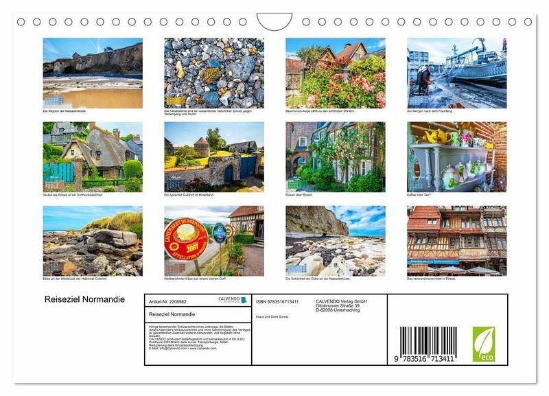 QUALITÄT - Hochwertiger Fotokalender mit 12 wunderschönen Motiven auf lichtbeständigem Bilderdruckpapier, robuste Spiralbindung mit Aufhängebügel.NACHHALTIG - deutliche Abfallreduzierung durch bedarfsgerechte Einzelstückfertigung, umweltfreundliches FSC-zertifiziertes Papier, Produktion in Deutschland, klimabewusste Logistik.PERFEKTES GESCHENK - Kalender für Freunde und Familie, für Kinder und Erwachsene, jung und alt, zu Weihnachten, Geburtstag oder zwischendurch.VIELFALT - Bildkalender in verschiedenen Formaten, z.B. DIN A5, DIN A4, DIN A3 sowie DIN A2. Ob Naturmotiv, Gemälde oder Fotos, ideal für ein persönliches Wohlfühlambiente.Mein Reiseziel Normandie verführt mit malerischen Motiven. von Autor(in): Klaus Scholz
