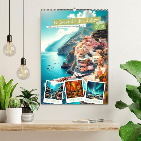 Entdecken Sie mit 'Reiseziele des Jahres' jeden Monat ein neues Wunder dieser Welt. Vom magischen Nordlicht Norwegens bis zu Australiens lebendigem Great Barrier Reef - entdecken Sie 12 atemberaubende Orte, die Ihre Sehnsucht nach Reisen wecken. Jedes Bild, kunstvoll von KI erschaffen, illustriert die Schönheit und Einzigartigkeit jedes Ziels. Der Kalender ist mehr als eine Bildsammlung; er ist eine Einladung, die Welt zu entdecken. Lassen Sie sich jeden Monat von 'Vom Nordlicht bis Korallenriff: 12 Traumziele' inspirieren und planen Sie Ihre Traumreisen. Perfekt für Globetrotter, Abenteuerlustige und Träumer ferner Länder.