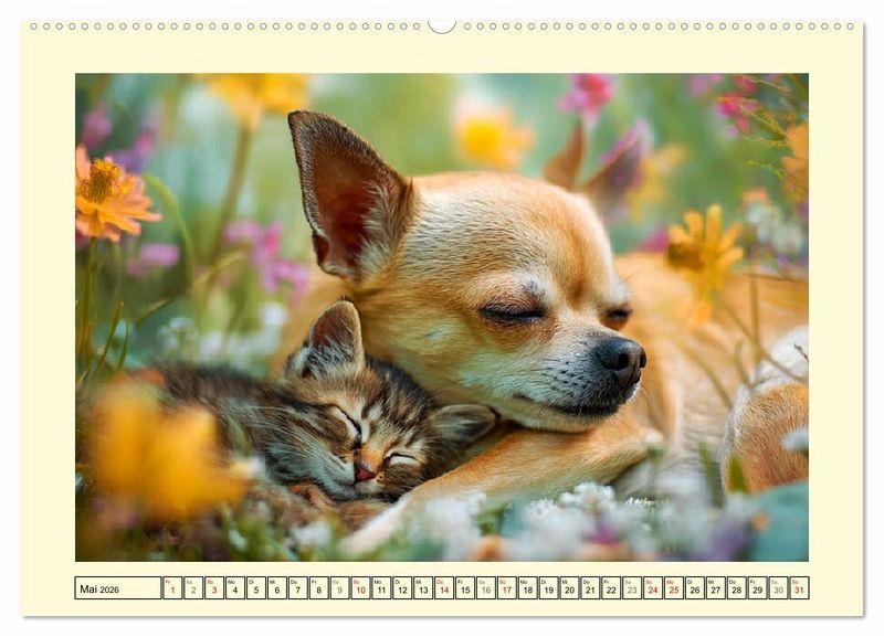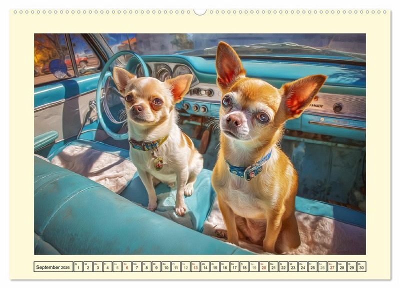 Dieser Kalender zeigt bezaubernde Illustrationen niedlicher Chihuahuas in vielfältigen, stimmungsvollen Szenen. Die kleinen, zarten Hunde stammen ursprünglich aus Mexiko und verzaubern mit ihrer lebensfrohen Art, ihrem charmanten Äußeren und ihrem einzigartigen Charakter. Alle Bilder wurden mit Hilfe von KI liebevoll gestaltet und erzählen stille Geschichten über das sanfte, tapfere Herz dieser süßen Gefährten.