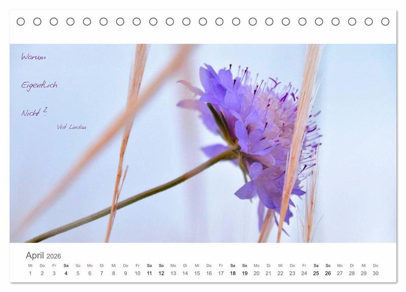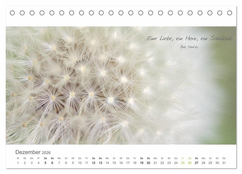 Dieser Kalender bringt Ihnen diese Momente in Form dekorativer Fotos mit den Zitaten verschiedener (Lebens-) Künstler in Ihr persönliches Heim.