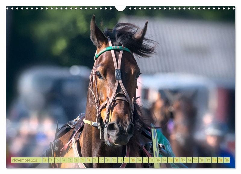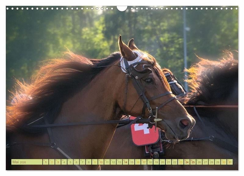 Ausdrucksvolle Traber und Galopper, in dynamischer Bewegung fotografiert, zeigen die Welt des Pferdesports. Der direkte Blick in die Augen dieser Tiere offenbaren deren noblen Charakter. Unweigerlich wird jeder Pferdeliebhaber in eine Welt der Eleganz und Geschwindigkeit entführt. Momentaufnahmen im Wettkampf fangen Schönheit, Stolz, Gesichtsausdrücke und Kraft dieser majestätischen Tiere ein. Ein zauberhaftes, besonderes Geschenk für jeden Pferdefreund. Jeder Monat bringt die Erhabenheit und den Nervenkitzel des Rennsports in Ihr Leben.