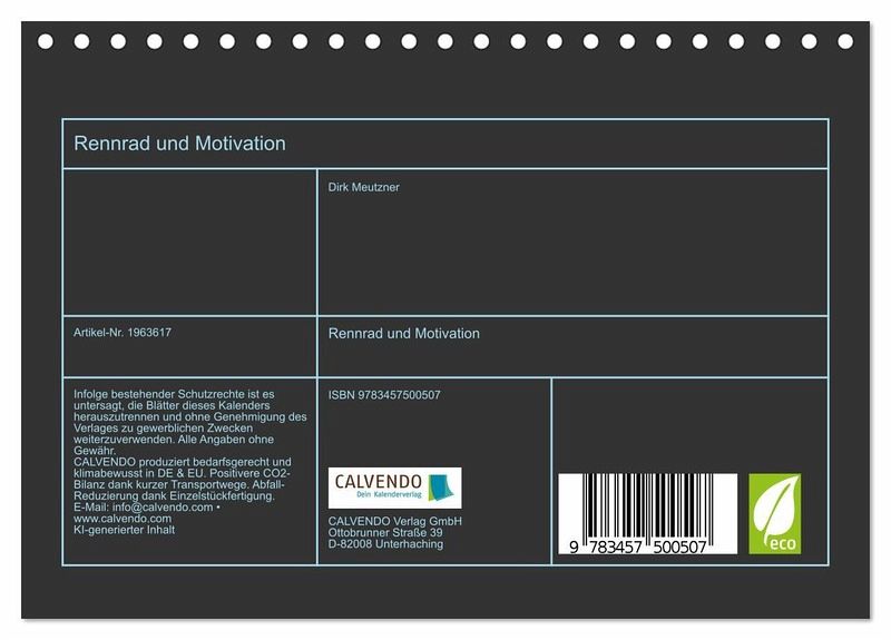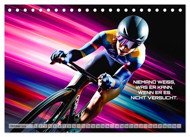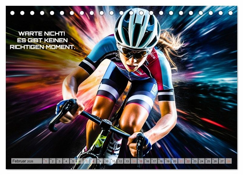 Erleben Sie das Jahr 2024 in voller Geschwindigkeit mit unserem exklusiven Wandkalender - Rennrad und Motivation! Tauchen Sie ein in die faszinierende Welt des Radsports und lassen Sie sich von beeindruckenden Rennrad-Aufnahmen inspirieren, die Sie jeden Monat begleiten. Unser Wandkalender bietet nicht nur atemberaubende Bilder von Rennrädern in actiongeladenen Szenen, sondern auch inspirierende Zitate und motivierende Sprüche, die Ihnen den nötigen Antrieb geben, um Ihre Ziele zu erreichen. Egal, ob Sie selbst ein leidenschaftlicher Radsportler sind oder jemanden kennen, der die Herausforderung und den Nervenkitzel des Rennradfahrens liebt, dieser Kalender ist das perfekte Geschenk für jeden Fahrrad-Enthusiasten! Holen Sie sich jetzt Ihren Rennrad und Motivation Wandkalender und spüren Sie die Energie des Radsports das ganze Jahr über! Erstellt wurden die Bilder im übrigen mit KI und Photoshop.