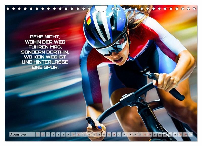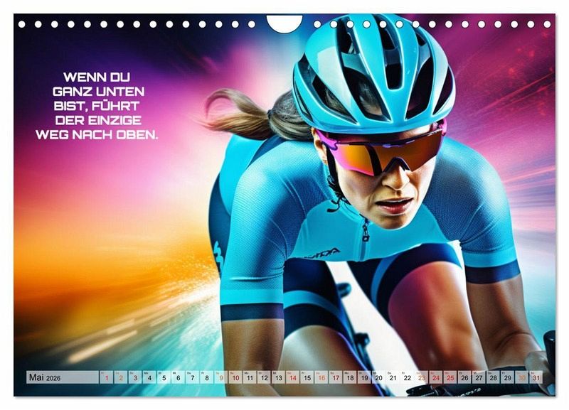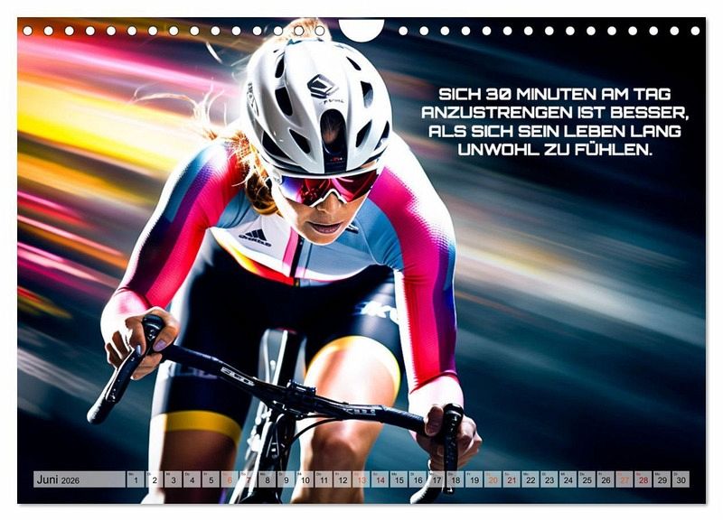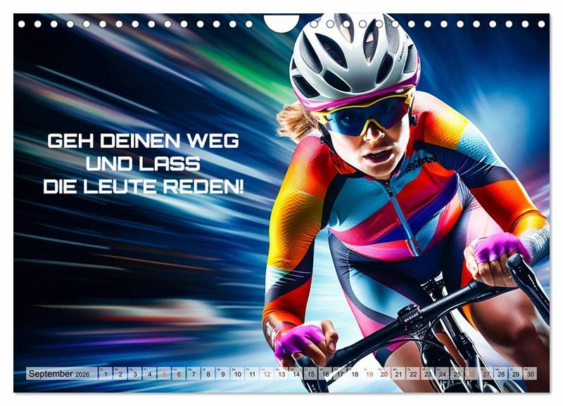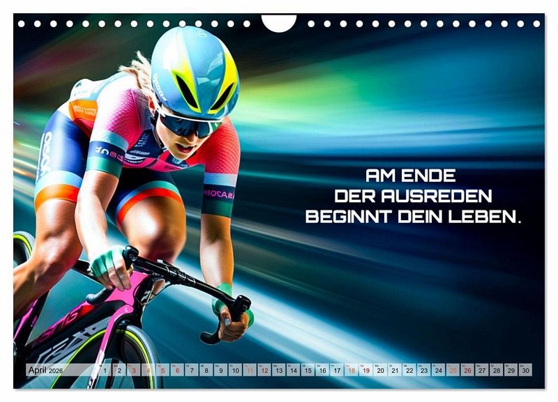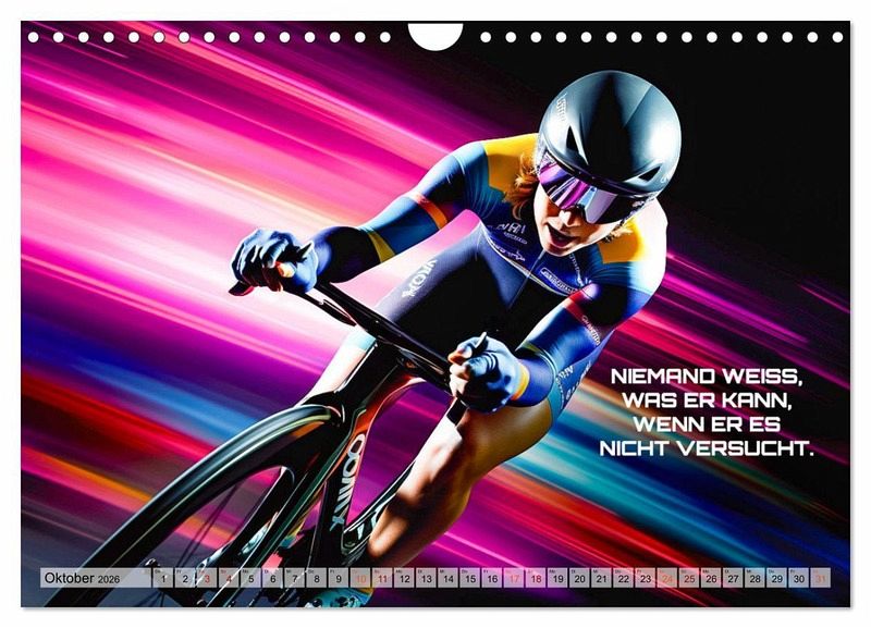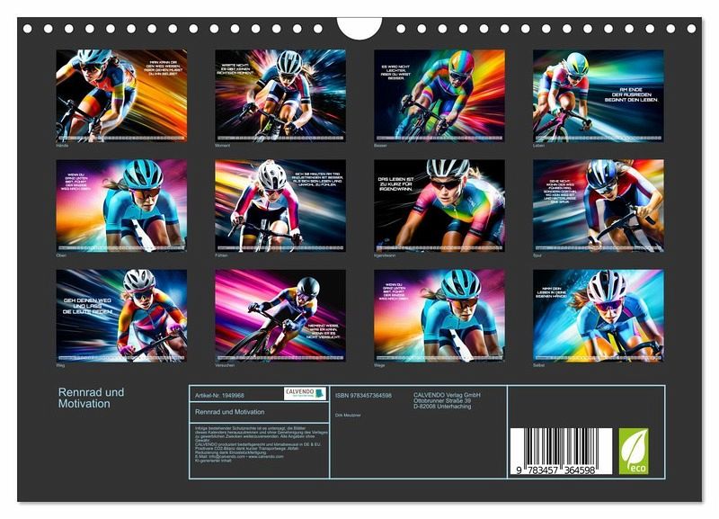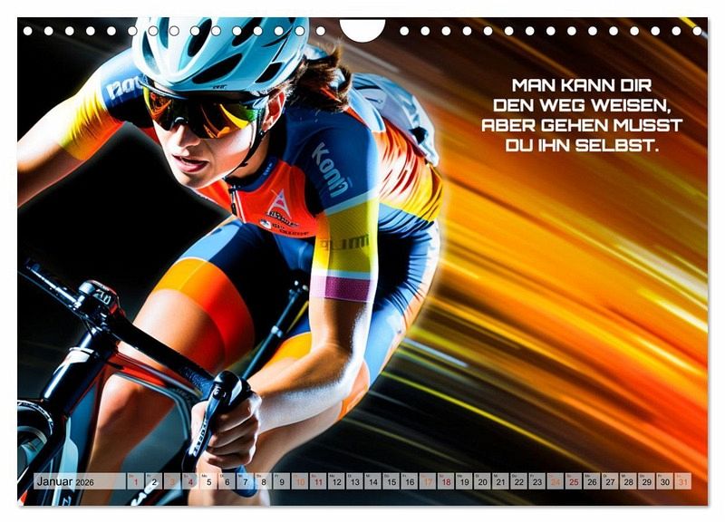 Erleben Sie das Jahr 2024 in voller Geschwindigkeit mit unserem exklusiven Wandkalender - Rennrad und Motivation! Tauchen Sie ein in die faszinierende Welt des Radsports und lassen Sie sich von beeindruckenden Rennrad-Aufnahmen inspirieren, die Sie jeden Monat begleiten. Unser Wandkalender bietet nicht nur atemberaubende Bilder von Rennrädern in actiongeladenen Szenen, sondern auch inspirierende Zitate und motivierende Sprüche, die Ihnen den nötigen Antrieb geben, um Ihre Ziele zu erreichen. Egal, ob Sie selbst ein leidenschaftlicher Radsportler sind oder jemanden kennen, der die Herausforderung und den Nervenkitzel des Rennradfahrens liebt, dieser Kalender ist das perfekte Geschenk für jeden Fahrrad-Enthusiasten! Holen Sie sich jetzt Ihren Rennrad und Motivation Wandkalender und spüren Sie die Energie des Radsports das ganze Jahr über! Erstellt wurden die Bilder im übrigen mit KI und Photoshop.