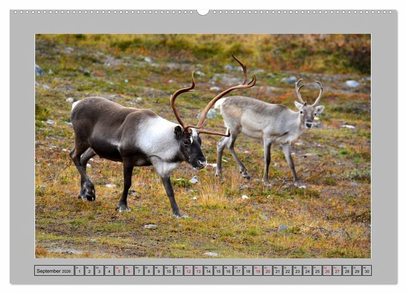 Rentiere leben im Hohen Norden und lieben es kühl. Sowohl die männlichen als auch die weiblichen Tiere tragen ein Geweih, wobei das Geweih der Männchen wesentlich imposanter und ausgeprägter ist. Mit diesem Kalender erleben Sie die Schönheit der Rentiere im Hohen Norden.