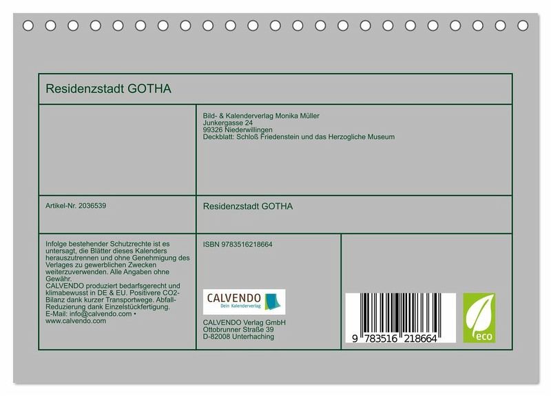 QUALITÄT - Hochwertiger Fotokalender mit 12 wunderschönen Motiven auf lichtbeständigem Bilderdruckpapier, robuste Spiralbindung.NACHHALTIG - deutliche Abfallreduzierung durch bedarfsgerechte Einzelstückfertigung, umweltfreundliches FSC-zertifiziertes Papier, Produktion in Deutschland, klimabewusste Logistik.PERFEKTES GESCHENK - Kalender für Freunde und Familie, für Kinder und Erwachsene, jung und alt, zu Weihnachten, Geburtstag oder zwischendurch.VIELFALT - Bildkalender in verschiedenen Formaten, z.B. DIN A5, DIN A4, DIN A3 sowie DIN A2. Ob Naturmotiv, Gemälde oder Fotos, ideal für ein persönliches Wohlfühlambiente.Die Residenzstadt Gotha lädt zu einem Spaziergang ein. von Autor(in): Monika Müller