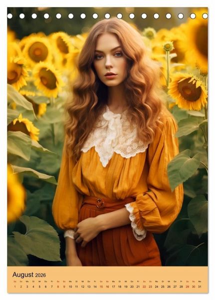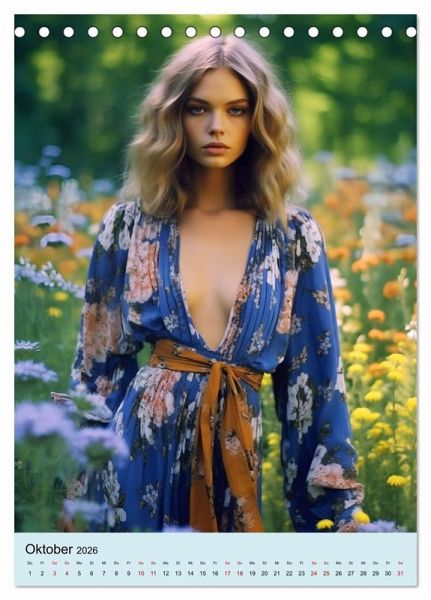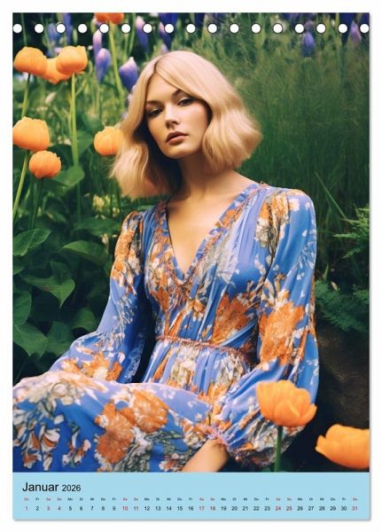 Tauchen Sie ein in die fantasievolle Welt in Anlehnung der Mode der 70er Jahre. Dieser Retro Chic Kalender präsentiert eine Sammlung von wunderschönen KI generierten Porträts, die die Stilrichtungen und Trends dieser nostalgischen Ära aufgreifen und neu interpretiert. Lassen Sie sich von den ikonischen Frauenkleidern und trendigen Overalls inspirieren, während die Damen in einem malerischen Garten zwischen üppigen Blumen in voller Blüte posieren.