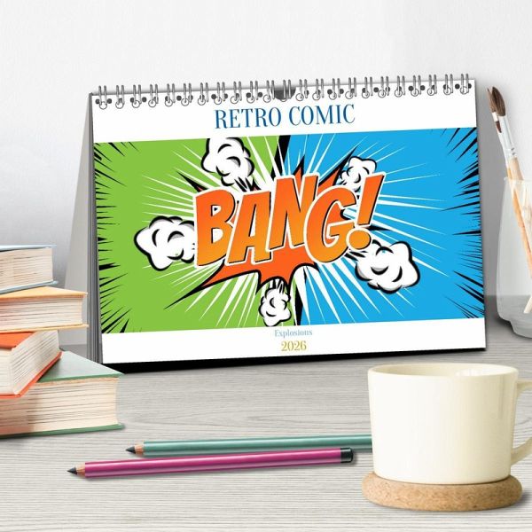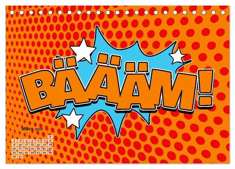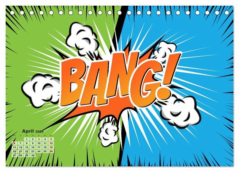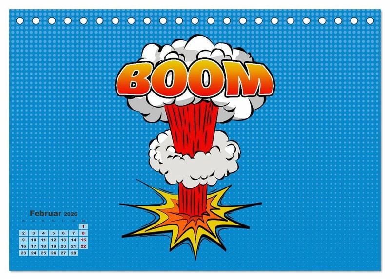 Endecke wieder das Kind mit dir und gehe mit uns durch das Jahr vom vom Boom zum Bang. Zwölf Comic Explosionen sorgen jeden Monat für gute Laune und sind ein knalliger Blickfang.