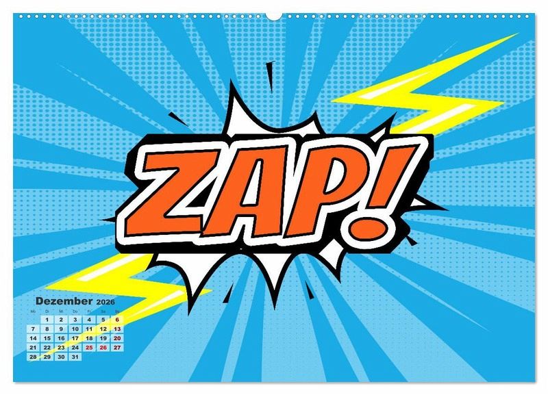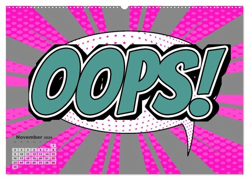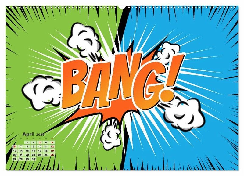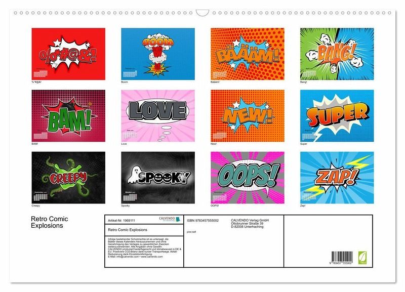 Endecke wieder das Kind mit dir und gehe mit uns durch das Jahr vom vom Boom zum Bang. Zwölf Comic Explosionen sorgen jeden Monat für gute Laune und sind ein knalliger Blickfang.