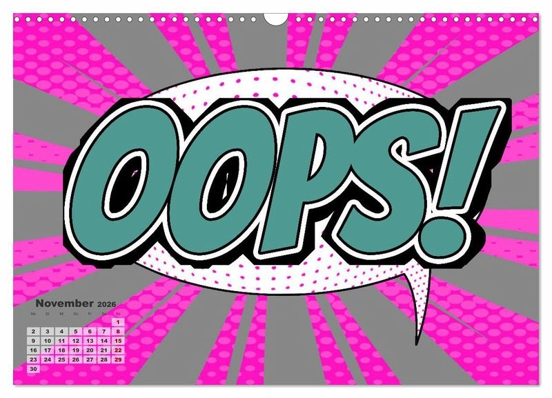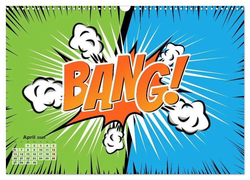 Endecke wieder das Kind mit dir und gehe mit uns durch das Jahr vom vom Boom zum Bang. Zwölf Comic Explosionen sorgen jeden Monat für gute Laune und sind ein knalliger Blickfang.