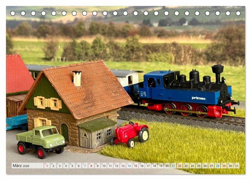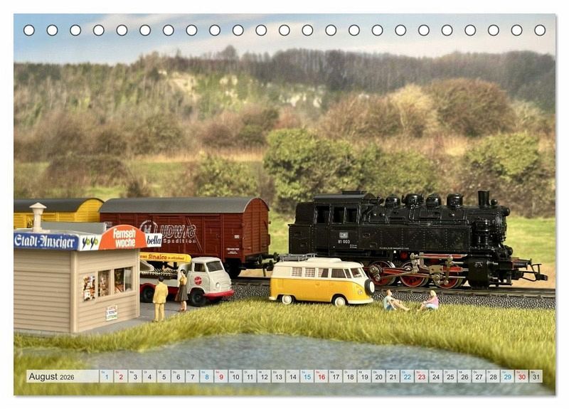 Robuste Loks, bunte Faller-Häuschen und eine Menge Wiking-Autos: Früher stand noch das Spiel mit der Modelleisenbahn im Vordergrund, nicht so sehr die super-realistische Darstellung. Dieser Kalender bietet einen nostalgischen Rückblick als es beim Modellbahn-Hobby noch entspannter zuging.
