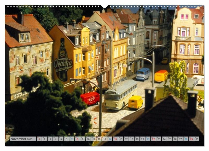 Robuste Loks, bunte Faller-Häuschen und eine Menge Wiking-Autos: Früher stand noch das Spiel mit der Modelleisenbahn im Vordergrund, nicht so sehr die super-realistische Darstellung. Dieser Kalender bietet einen nostalgischen Rückblick als es beim Modellbahn-Hobby noch entspannter zuging.
