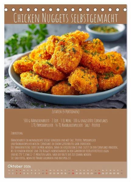 Dieser Kalender bringt Abwechslung in die Küche und zeigt 12 moderne Rezepte für die Heißluftfritteuse. Schnell und einfach kochen, Fleisch, Fisch und Beilagen gelingen knusprig und ohne viel Aufwand. Ob Hackbraten, Cevapcici, Chicken Nuggets oder Hot Honey Chicken Bowl - jedes Rezept ist alltagstauglich und ein echtes Highlight. Die Heißluftfritteuse, auch bekannt als Air Fryer oder Fritteuse ohne Öl, steht hier im Mittelpunkt. Die Rezepte sind so gestaltet, dass sie wie in einem Kochbuch gesammelt wirken und Inspiration für jeden Tag liefern. Praktisch, modern und mit klarer Schritt-für-Schritt-Anleitung, eignet sich der Küchenkalender perfekt für Einsteiger und Profis gleichermaßen. Bilder mit KI generiert.