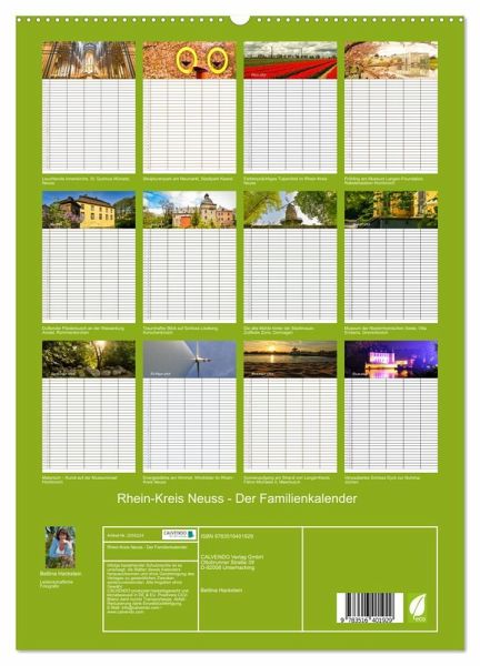 PREMIUM-LINIE - Brillanter Fotokalender mit 12 wunderschönen Motiven, Kunstdruck in Hochglanz in Museumsqualität.QUALITÄT - edle Materialien, stabile Rückwand mit 2 innovativen Einstecktaschen für eine optimale Präsentation an der Wand.NACHHALTIG - deutliche Abfallreduzierung durch bedarfsgerechte Einzelstückfertigung, umweltfreundliches FSC-zertifiziertes Papier, Produktion in Deutschland, klimabewusste Logistik.PERFEKTES GESCHENK - Kalender für Freunde und Familie, für Kinder und Erwachsene, jung und alt, zu Weihnachten, Geburtstag oder zwischendurch.Bezaubernder Familienkalender mit 5 Spalten und herrlichen Fotos aus dem Rhein-Kreis Neuss von Autor(in): Bettina Hackstein