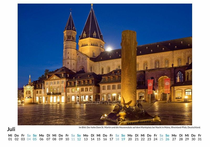 Entdecken Sie die Schönheit von Rheinland-Pfalz jeden Monat neu! Unser hochwertiger Wandkalender präsentiert 12 atemberaubende Motive dieser facettenreichen Region - von malerischen Weinbergen bis hin zu historischen Burgen. Gedruckt auf lichtbeständigem Bilderdruckpapier, kommen die Farben besonders brillant zur Geltung. Der Kalender wird in Deutschland auf FSC-zertifiziertem Papier produziert und vereint somit Nachhaltigkeit und Qualität. Perfekt für Ihr Zuhause oder als Geschenk für Liebhaber der Region. Holen Sie sich ein Stück Rheinland-Pfalz an die Wand und lassen Sie sich das ganze Jahr über inspirieren! Jetzt bestellen und die Vielfalt genießen! Hochwertig Erleben Sie ein Jahr voller Eleganz mit unserem Premium-Fotokalender. Jedes der 12 Motive ist auf hochwertigem, lichtbeständigem Bilderdruckpapier gedruckt, um die Lebendigkeit jedes Bildes zu bewahren. Die robuste Spiralbindung gewährleistet Langlebigkeit und einfache Handhabung. Nachhaltig Unser Engagement für die Umwelt spiegelt sich in jedem Exemplar wider. Durch die Produktion auf Abruf reduzieren wir signifikant unseren Abfall. Wir verwenden ausschließlich umweltfreundliches, FSC-zertifiziertes Papier. Stolz gefertigt in Deutschland, achten wir bei unserer Logistik auf Klimaschutz, um unseren ökologischen Fußabdruck zu minimieren. Das ideale Geschenk Dieser Kalender ist das perfekte Präsent für jeden Anlass - ob Weihnachten, Geburtstage oder einfach als liebevolle Aufmerksamkeit zwischendurch. Geeignet für Freunde, Familie, Kinder und Erwachsene gleichermaßen, bereichert er jedes Zuhause mit seiner Vielfalt und Schönheit, unabhängig vom Alter der Beschenkten.