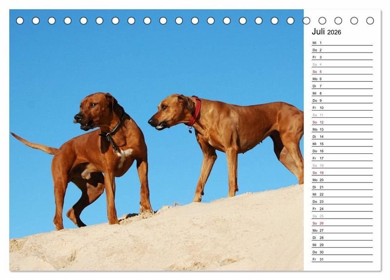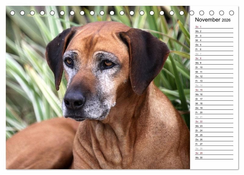 Hundeausstellungen, Hundesportveranstaltungen, der nächste Impftermin. Welcher Hundebesitzer kennt das nicht? Auch der beste Freund des Menschen braucht in der heutigen Zeit seinen eigenen Terminkalender. Der Fotografin Anke van Wyk, www.germanpix.net, ist mit diesem Fotokalender eine Kombination gelungen, die sich sehen lassen kann. Wunderschöne Aufnahmen von Rhodesian Ridgebacks aus dem Ursprungsland dieser Hunderasse, Suedafrika, und direkt daneben der Planer, in dem Sie Ihre eigenen Hundetermine eintragen können. Der Rhodesian Ridgeback Terminkalender; gut organisiert und schön anzusehen. Ein Muss für jeden Rhodesian Ridgeback Liebhaber!