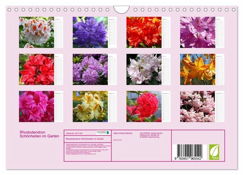 QUALITÄT - Hochwertiger Fotokalender mit 12 wunderschönen Motiven auf lichtbeständigem Bilderdruckpapier, robuste Spiralbindung mit Aufhängebügel.NACHHALTIG - deutliche Abfallreduzierung durch bedarfsgerechte Einzelstückfertigung, umweltfreundliches FSC-zertifiziertes Papier, Produktion in Deutschland, klimabewusste Logistik.PERFEKTES GESCHENK - Kalender für Freunde und Familie, für Kinder und Erwachsene, jung und alt, zu Weihnachten, Geburtstag oder zwischendurch.VIELFALT - Bildkalender in verschiedenen Formaten, z.B. DIN A5, DIN A4, DIN A3 sowie DIN A2. Ob Naturmotiv, Gemälde oder Fotos, ideal für ein persönliches Wohlfühlambiente.Wundervolle Rhododendren Portraits in voller Farbenpracht von Autor(in): Martina Cross
