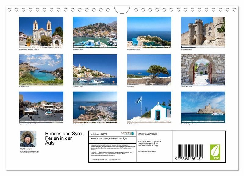 QUALITÄT - Hochwertiger Fotokalender mit 12 wunderschönen Motiven auf lichtbeständigem Bilderdruckpapier, robuste Spiralbindung mit Aufhängebügel.NACHHALTIG - deutliche Abfallreduzierung durch bedarfsgerechte Einzelstückfertigung, umweltfreundliches FSC-zertifiziertes Papier, Produktion in Deutschland, klimabewusste Logistik.PERFEKTES GESCHENK - Kalender für Freunde und Familie, für Kinder und Erwachsene, jung und alt, zu Weihnachten, Geburtstag oder zwischendurch.VIELFALT - Bildkalender in verschiedenen Formaten, z.B. DIN A5, DIN A4, DIN A3 sowie DIN A2. Ob Naturmotiv, Gemälde oder Fotos, ideal für ein persönliches Wohlfühlambiente.Weißblaue Paradiese und Perlen in der Ägäis, Rhodos und Symi. von Autor(in): Tilo Grellmann