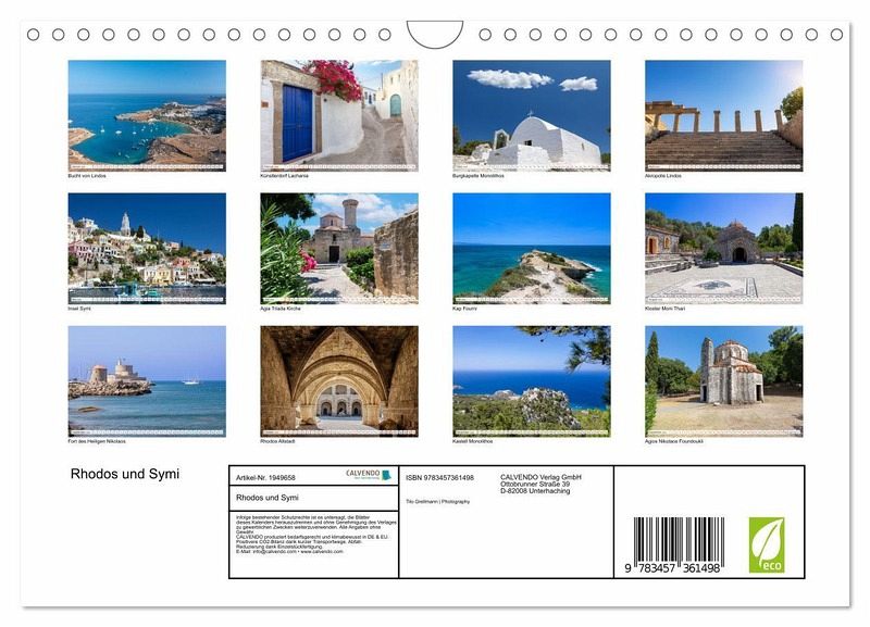 QUALITÄT - Hochwertiger Fotokalender mit 12 wunderschönen Motiven auf lichtbeständigem Bilderdruckpapier, robuste Spiralbindung mit Aufhängebügel.NACHHALTIG - deutliche Abfallreduzierung durch bedarfsgerechte Einzelstückfertigung, umweltfreundliches FSC-zertifiziertes Papier, Produktion in Deutschland, klimabewusste Logistik.PERFEKTES GESCHENK - Kalender für Freunde und Familie, für Kinder und Erwachsene, jung und alt, zu Weihnachten, Geburtstag oder zwischendurch.VIELFALT - Bildkalender in verschiedenen Formaten, z.B. DIN A5, DIN A4, DIN A3 sowie DIN A2. Ob Naturmotiv, Gemälde oder Fotos, ideal für ein persönliches Wohlfühlambiente.Zwei Perlen in der Ägäis, Rhodos und Symi von Autor(in): Tilo Grellmann