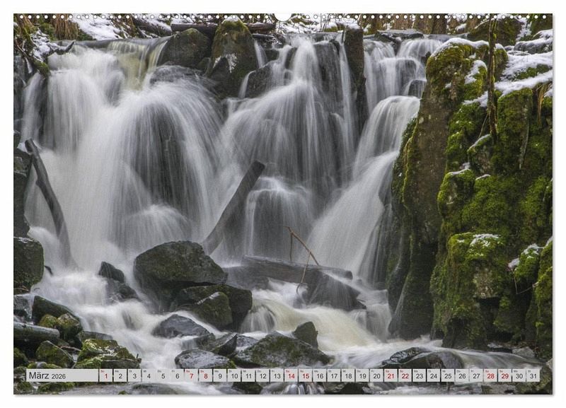 März: Der Wasserfall "Teufelsmühle" am Schwarzbach bei Bischofsheim / Fotograf Manfred Hempe