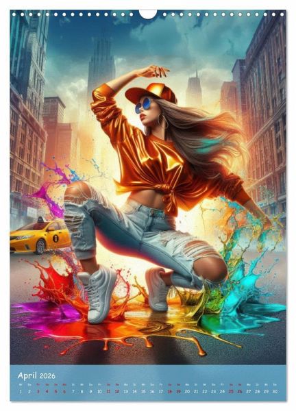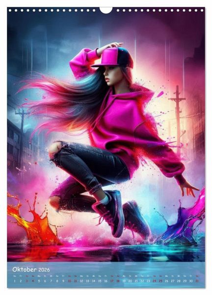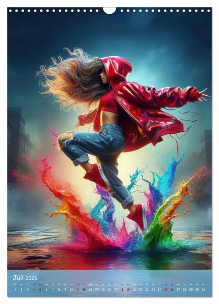 Rhythmus in Farben - Dynamische Hip-Hop-Tänzer ist ein einzigartiger KI Kalender, der die kraftvolle Energie des Hip-Hop-Tanzes mit der künstlerischen Schönheit in bunten Farben verbindet. Jeder Monat präsentiert einen stilvollen Tänzer oder eine Tänzerin, der oder die in lebendigen Farben und fließenden Formen dargestellt ist. Die dynamischen Bewegungen verschmelzen mit den kraftvollen Farbtönen, wodurch ein visuelles Fest entsteht, das den Rhythmus und die Leidenschaft des Hip-Hop einfängt.