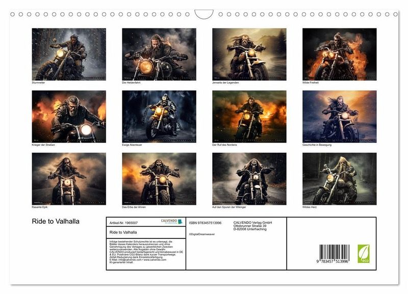 Tauchen Sie ein in eine epische Reise durch die nordische Mythologie und die Welt der Motorräder mit unserem brandneuen Kalender - #RideToValhalla! Erleben Sie die fesselnde Kombination aus bärtigen Kriegern, deren Haare im Wind wehen, und historischen Motorrädern, während sie auf ihren Maschinen durch die Tore von Valhalla fahren.Jeder Monat präsentiert Ihnen ein atemberaubendes Kunstwerk, das die wilde Freiheit und den Geist der nordischen Legenden einfängt. Von majestätischen Landschaften bis hin zu heroischen Schlachten - unsere Bilder werden Sie in eine Welt des Abenteuers entführen.…mehr