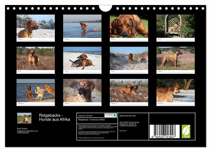 QUALITÄT - Hochwertiger Fotokalender mit 12 wunderschönen Motiven auf lichtbeständigem Bilderdruckpapier, robuste Spiralbindung mit Aufhängebügel.NACHHALTIG - deutliche Abfallreduzierung durch bedarfsgerechte Einzelstückfertigung, umweltfreundliches FSC-zertifiziertes Papier, Produktion in Deutschland, klimabewusste Logistik.PERFEKTES GESCHENK - Kalender für Freunde und Familie, für Kinder und Erwachsene, jung und alt, zu Weihnachten, Geburtstag oder zwischendurch.VIELFALT - Bildkalender in verschiedenen Formaten, z.B. DIN A5, DIN A4, DIN A3 sowie DIN A2. Ob Naturmotiv, Gemälde oder Fotos, ideal für ein persönliches Wohlfühlambiente.Faszination Rhodesian Ridgeback - ein Portrait dieser tollen Rasse von Autor(in): Birgit Bodsch