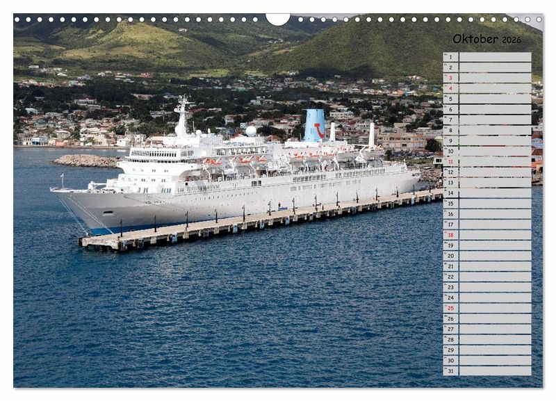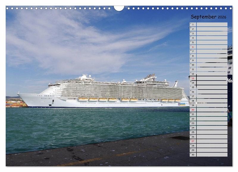 Ein perfekter Jahresbegleiter für jeden Liebhaber von Kreuzfahrten und Kreuzfahrtschiffen. Eine kalendarische Bilderserie der schönsten und größten Kreuzfahrtschiffe!