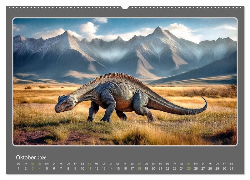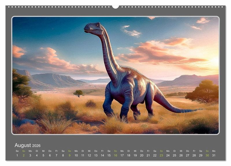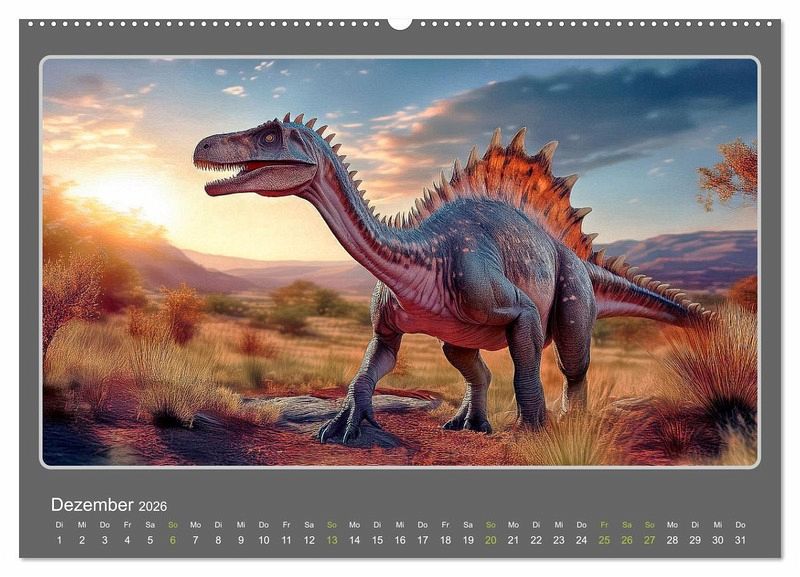 Entdecken Sie die faszinierende Welt der Saurier mit diesem einzigartigen Kalender! Tauchen Sie ein in eine lange vergangene Zeit, in der majestätische Kreaturen wie der mächtige Tyrannosaurus Rex, der beeindruckende Brachiosaurus und der massige Triceratops die Erde bevölkerten. Mit Unterstützung der künstlichen Intelligenz präsentiert jeder Monat ein beeindruckendes Bild dieser urzeitlichen Giganten, das Ihnen die Vielfalt und Einzigartigkeit der Saurier vor Augen führt. Erleben Sie die Vielfalt der Riesenechsen in unvergesslichen Illustrationen. Dieser Kalender ist ein Muss für Saurier-Fans und stellt nicht nur die beeindruckenden Kreaturen dar, sondern vermittelt den Eindruck vom faszinierendes Leben auf unserem Planeten lange vor unserer Zeit.