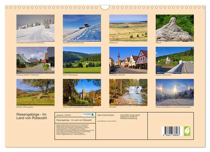 QUALITÄT - Hochwertiger Fotokalender mit 12 wunderschönen Motiven auf lichtbeständigem Bilderdruckpapier, robuste Spiralbindung mit Aufhängebügel.NACHHALTIG - deutliche Abfallreduzierung durch bedarfsgerechte Einzelstückfertigung, umweltfreundliches FSC-zertifiziertes Papier, Produktion in Deutschland, klimabewusste Logistik.PERFEKTES GESCHENK - Kalender für Freunde und Familie, für Kinder und Erwachsene, jung und alt, zu Weihnachten, Geburtstag oder zwischendurch.VIELFALT - Bildkalender in verschiedenen Formaten, z.B. DIN A5, DIN A4, DIN A3 sowie DIN A2. Ob Naturmotiv, Gemälde oder Fotos, ideal für ein persönliches Wohlfühlambiente.Bilderreise durch das Riesengebirge von Autor(in): Thomas Polske