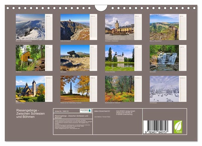 QUALITÄT - Hochwertiger Fotokalender mit 12 wunderschönen Motiven auf lichtbeständigem Bilderdruckpapier, robuste Spiralbindung mit Aufhängebügel.NACHHALTIG - deutliche Abfallreduzierung durch bedarfsgerechte Einzelstückfertigung, umweltfreundliches FSC-zertifiziertes Papier, Produktion in Deutschland, klimabewusste Logistik.PERFEKTES GESCHENK - Kalender für Freunde und Familie, für Kinder und Erwachsene, jung und alt, zu Weihnachten, Geburtstag oder zwischendurch.VIELFALT - Bildkalender in verschiedenen Formaten, z.B. DIN A5, DIN A4, DIN A3 sowie DIN A2. Ob Naturmotiv, Gemälde oder Fotos, ideal für ein persönliches Wohlfühlambiente.Fotos aus dem polnischen und tschechischen Teil des Riesengebirges von Autor(in): Thomas Polske