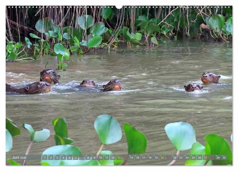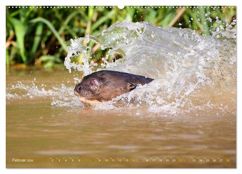 Das Pantanal, größtes Binnenfeuchtgebiet der Erde ist Heimat der seltenen, bis zu 2m großen und sehr neugierigen Riesenotter. Als Feinschmecker bevorzugen sie bestimmte Fischarten, darunter auch Piranhas. Auf diesen wunderschönen Bildern erleben Sie die niedlichen Gesellen beim gemeinsamen Entspannen, bei der Verfolgung eines Eindringlings bei rasanten 40 km/h, der Körperpflege und beim Fischfang.