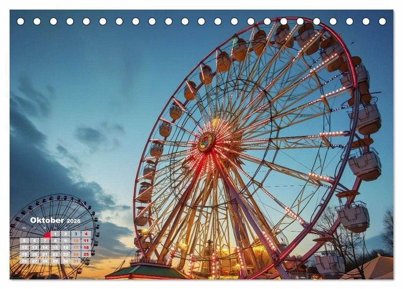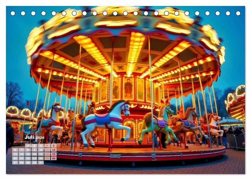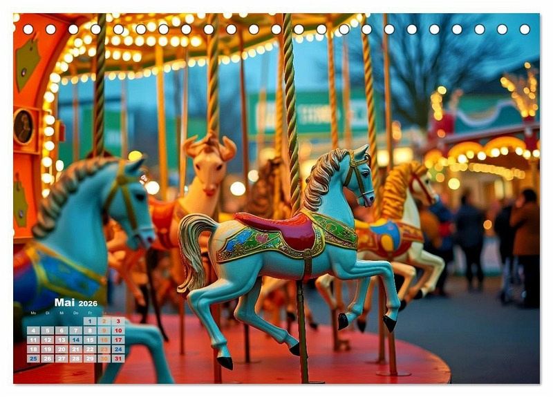 Ein Jahr voller Lichter, Lachen und Luftsprünge, der Kalender für alle, die das Kirmesgefühl lieben. Mit jedem Blatt ein neues Fahrgeschäft, ein neues Abenteuer, ein neuer Blick auf ein Riesenrad. Willkommen im Jahrmarkt der Träume. Dieser Kalender entführt dich Monat für Monat in eine Welt voller Magie, Musik und fliegender Karussells. Der Inhalt wurde mit Hilfe von KI erstellt.