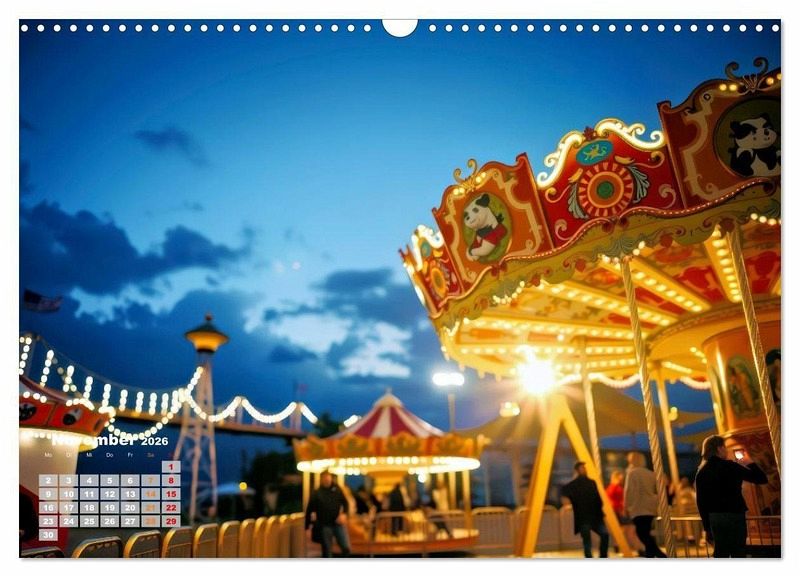 Ein Jahr voller Lichter, Lachen und Luftsprünge, der Kalender für alle, die das Kirmesgefühl lieben. Mit jedem Blatt ein neues Fahrgeschäft, ein neues Abenteuer, ein neuer Blick auf ein Riesenrad. Willkommen im Jahrmarkt der Träume. Dieser Kalender entführt dich Monat für Monat in eine Welt voller Magie, Musik und fliegender Karussells. Der Inhalt wurde mit Hilfe von KI erstellt.