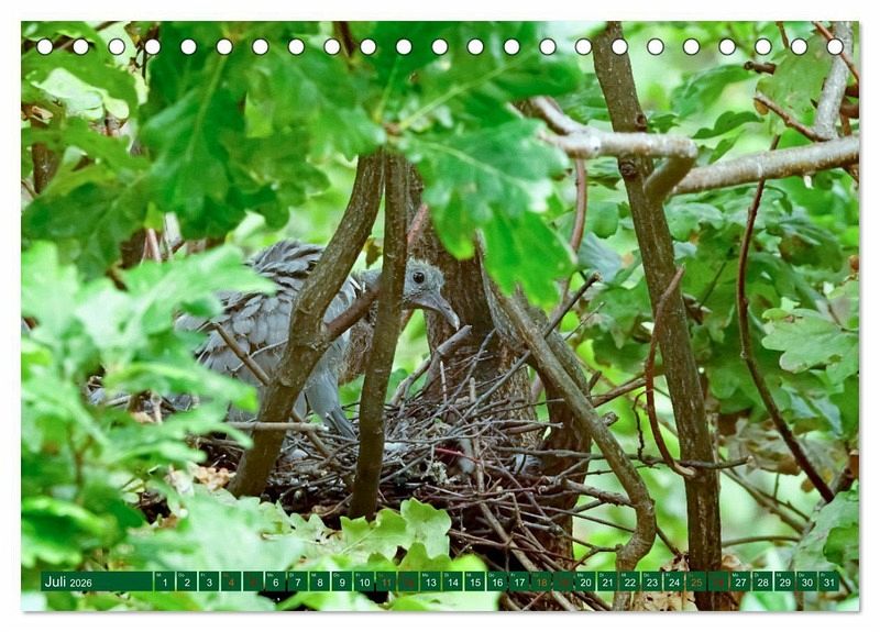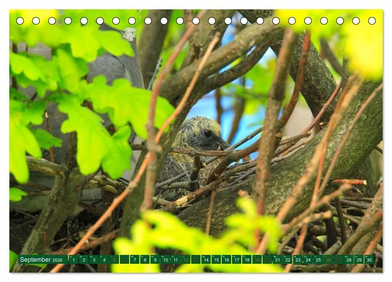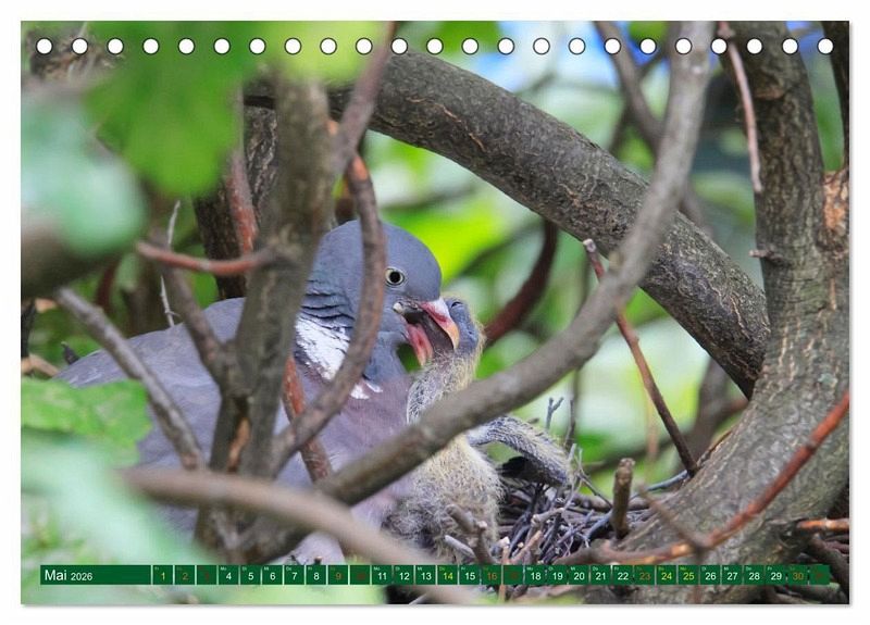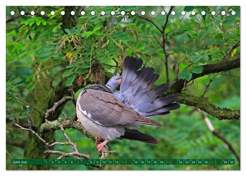 Ein Kalender mit Farbfotografien von Ringeltauben