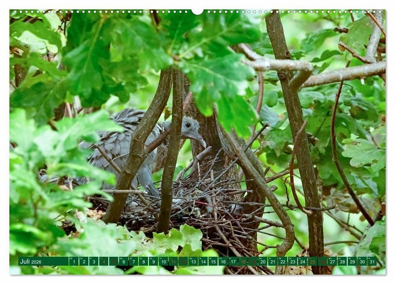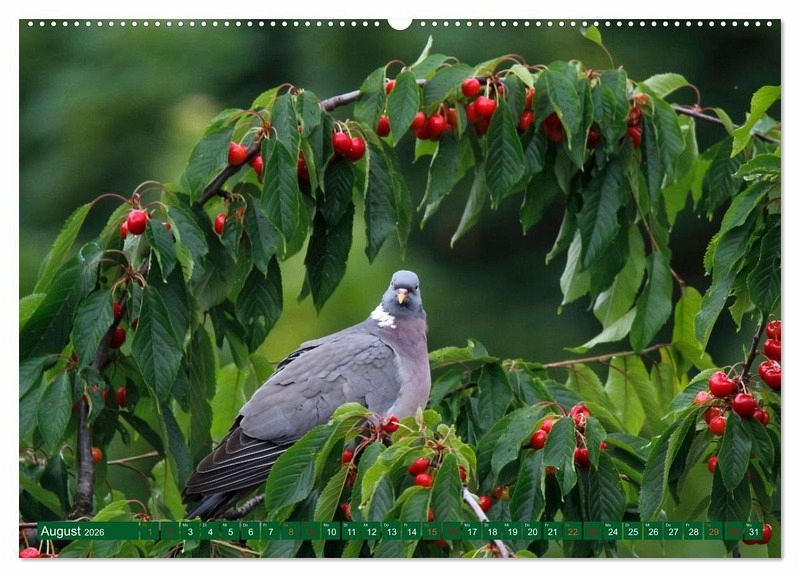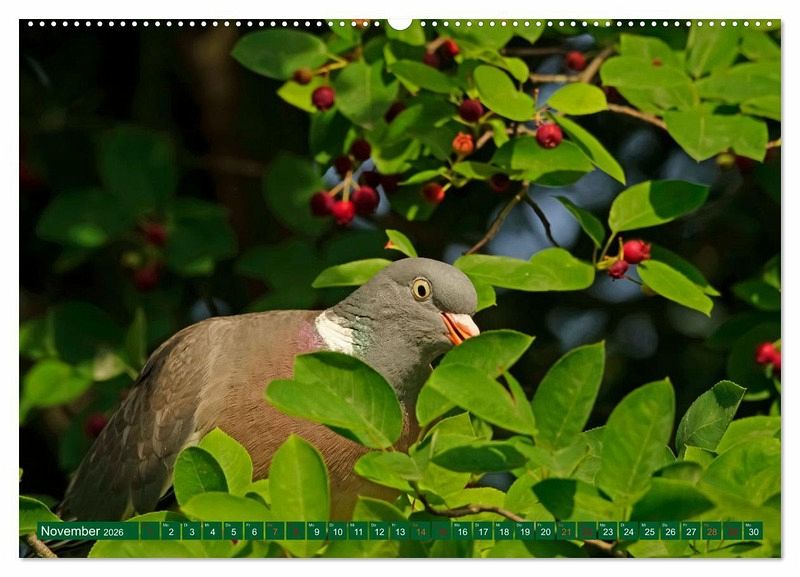 Ein Kalender mit Farbfotografien von Ringeltauben