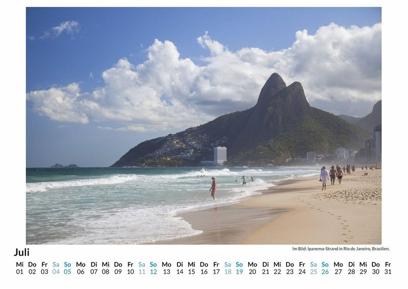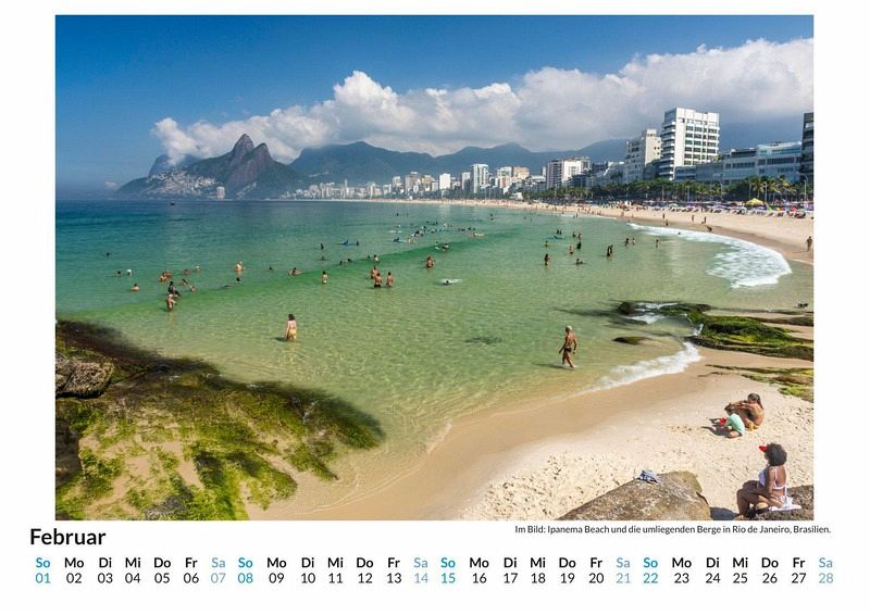 Entdecken Sie die pulsierende Schönheit von Rio de Janeiro in Ihrem Zuhause! Unser hochwertiger Wandkalender entführt Sie Monat für Monat in die faszinierende Welt der brasilianischen Metropole. Mit 12 atemberaubenden Motiven - von den ikonischen Stränden Copacabana und Ipanema bis hin zum majestätischen Zuckerhut - erleben Sie die Vielfalt und Lebensfreude dieser einzigartigen Stadt. Gedruckt auf lichtbeständigem, FSC-zertifiziertem Bilderdruckpapier, garantiert der Kalender brillante Farben und eine nachhaltige Produktion in Deutschland. Perfekt für alle, die Fernweh verspüren und sich ein Stück Brasilien an die Wand holen möchten. Holen Sie sich Rio nach Hause! Hochwertig Erleben Sie ein Jahr voller Eleganz mit unserem Premium-Fotokalender. Jedes der 12 Motive ist auf hochwertigem, lichtbeständigem Bilderdruckpapier gedruckt, um die Lebendigkeit jedes Bildes zu bewahren. Die robuste Spiralbindung gewährleistet Langlebigkeit und einfache Handhabung. Nachhaltig Unser Engagement für die Umwelt spiegelt sich in jedem Exemplar wider. Durch die Produktion auf Abruf reduzieren wir signifikant unseren Abfall. Wir verwenden ausschließlich umweltfreundliches, FSC-zertifiziertes Papier. Stolz gefertigt in Deutschland, achten wir bei unserer Logistik auf Klimaschutz, um unseren ökologischen Fußabdruck zu minimieren. Das ideale Geschenk Dieser Kalender ist das perfekte Präsent für jeden Anlass - ob Weihnachten, Geburtstage oder einfach als liebevolle Aufmerksamkeit zwischendurch. Geeignet für Freunde, Familie, Kinder und Erwachsene gleichermaßen, bereichert er jedes Zuhause mit seiner Vielfalt und Schönheit, unabhängig vom Alter der Beschenkten.