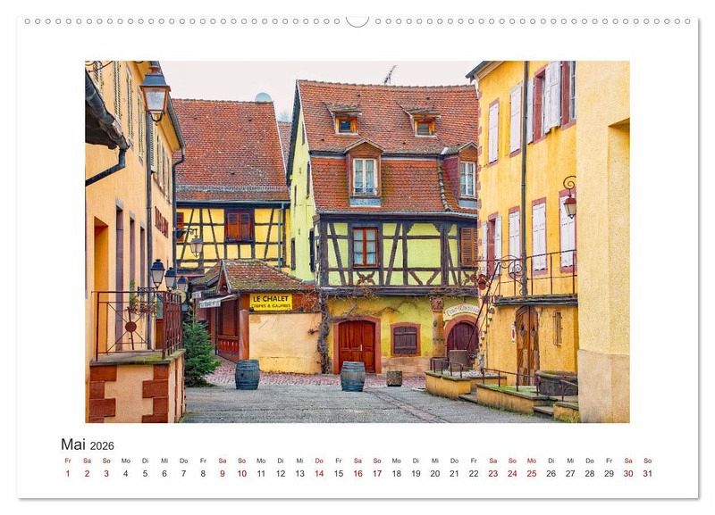 Eines der schönsten Dörfer Frankreichs - auf 12 beeindruckenden Bildern zeigt der Kalender jeden Monat wunderschöne Motive von Riquewihr. Die Altstadt scheint über die Jahrhunderte unverändert geblieben zu sein. Mit farbenfrohen Fachwerkhäusern und engen Gassen lädt das Dorf zu einem Bummel ein. Lassen Sie sich verzaubern vom Märchendorf und gehen Sie mit auf eine Entdeckungsreise.