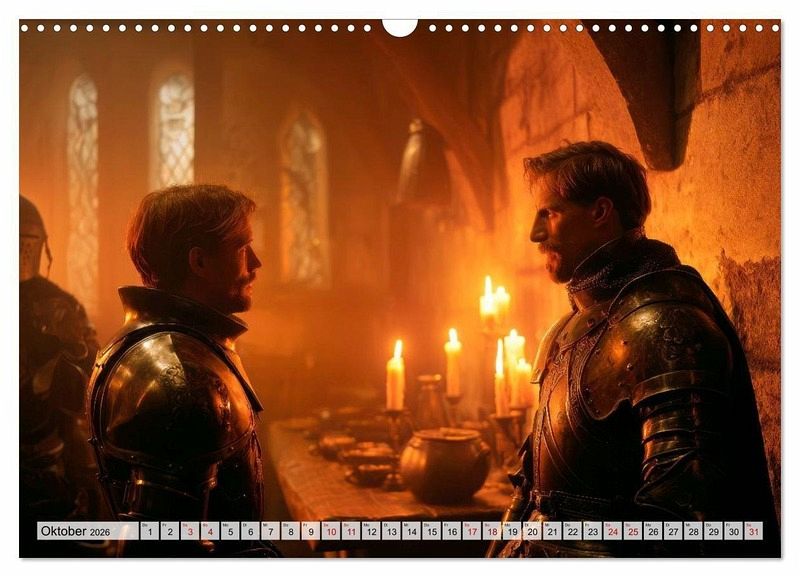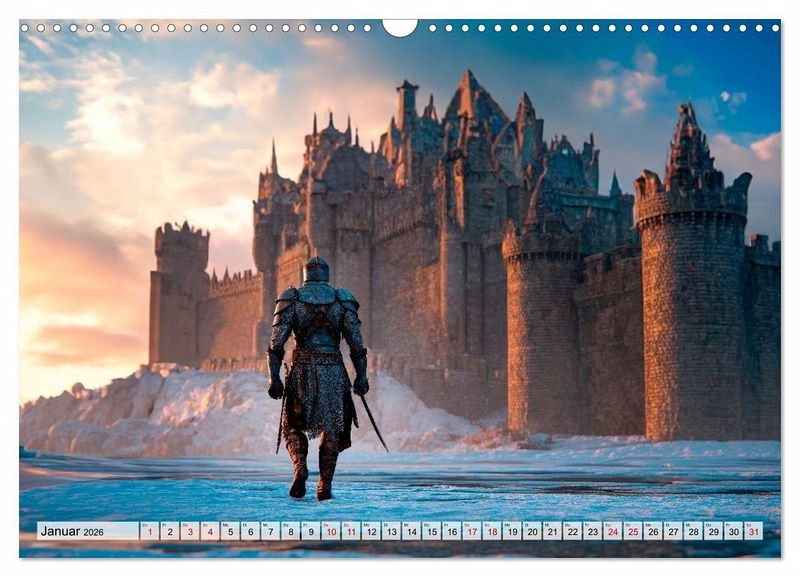 Erlebe die Welt der Ritter wie nie zuvor. Monumentale Motive zeigen eindrucksvolle Momente voller Kraft und Atmosphäre. Von unbeugsamen Wachen bis hin zu triumphalen Momenten spiegelt jedes Bild die Faszination mittelalterlicher Legenden wider. Im cineastischen Fotorealismus gestaltet, wirken die Szenen lebendig und eindrucksvoll. Sie wurden mit modernster KI erschaffen und vereinen Geschichte, Fantasie und Bildkunst zu einem unvergesslichen Kalender.