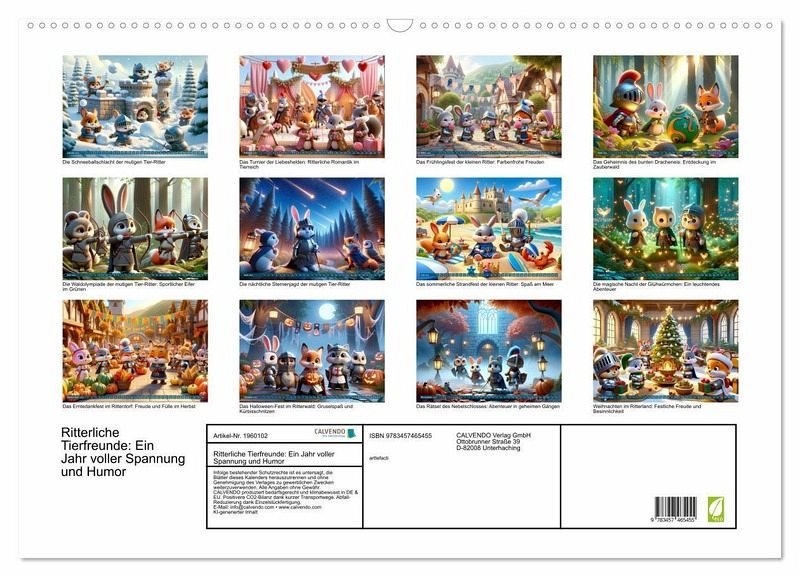 Entdecken Sie 'Ritterliche Tierfreunde: Ein Jahr voller Spannung und Humor'! Dieser einzigartige Kalender bringt Ihnen Monat für Monat faszinierende Motive, die von künstlicher Intelligenz erschaffen wurden. Jedes Bild erzählt eine humorvolle Geschichte mit niedlichen Tieren in Ritterrüstungen, die in einer mittelalterlichen Welt Abenteuer erleben. Ideal für Kinder und Erwachsene, die sich für eine faszinierende Kombination aus Technologie, Kunst und Humor begeistern. Ein wahres Kunstwerk, das die Grenzen der Kreativität erweitert!