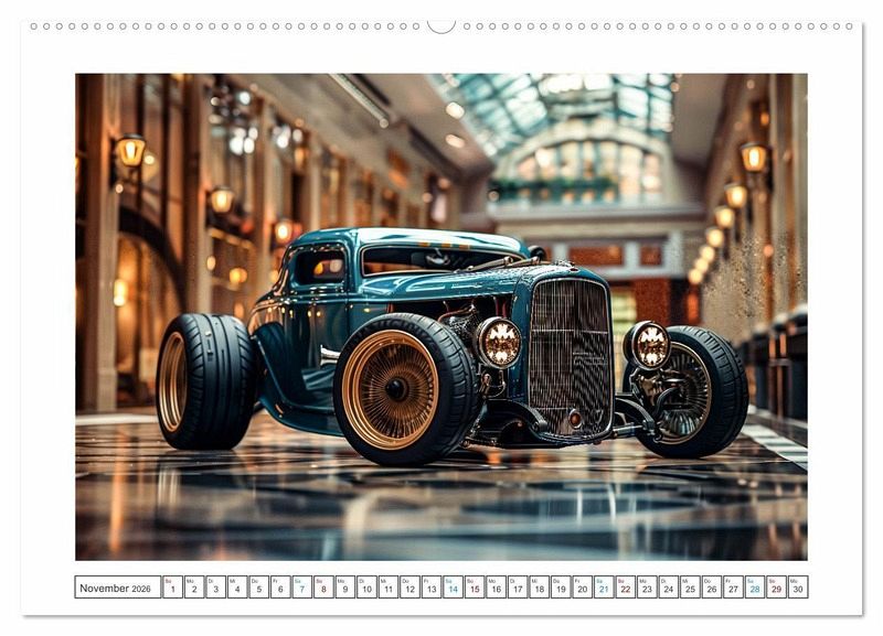 Lauter, schneller, kompromisslos - Hot Rods stehen für echtes Fahrgefühl, brachiale Power und ikonisches Design. Hier trifft glänzender Chrom auf röhrende V8-Motoren, und jede Kurve wird zur Showbühne. Ob klassische Street Rods oder feurige Custom Builds - ein Hot Rod ist nicht nur ein Fahrzeug, sondern eine Lebenseinstellung. Alle hier gezeigten Bilder wurden mit Sorgfalt, Liebe und mit Hilfe einer KI generiert. Abschließend werden sie mit Bildbearbeitungsprogrammen überarbeitet und in den Kalender eingefügt.