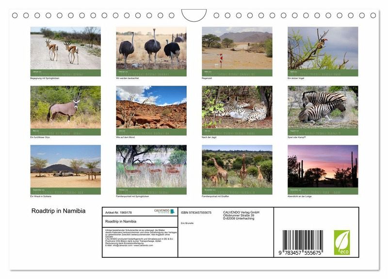 QUALITÄT - Hochwertiger Fotokalender mit 12 wunderschönen Motiven auf lichtbeständigem Bilderdruckpapier, robuste Spiralbindung mit Aufhängebügel.NACHHALTIG - deutliche Abfallreduzierung durch bedarfsgerechte Einzelstückfertigung, umweltfreundliches FSC-zertifiziertes Papier, Produktion in Deutschland, klimabewusste Logistik.PERFEKTES GESCHENK - Kalender für Freunde und Familie, für Kinder und Erwachsene, jung und alt, zuWeihnachten, Geburtstag oder zwischendurch.VIELFALT - Bildkalender in verschiedenen Formaten, z.B. DIN A5, DIN A4, DIN A3 sowie DIN A2. Ob Naturmotiv, Gemälde oder Fotos, ideal für ein persönliches Wohlfühlambiente.Begegnungen und Eindrücke in Namibia von Autor(in): Venusonearth