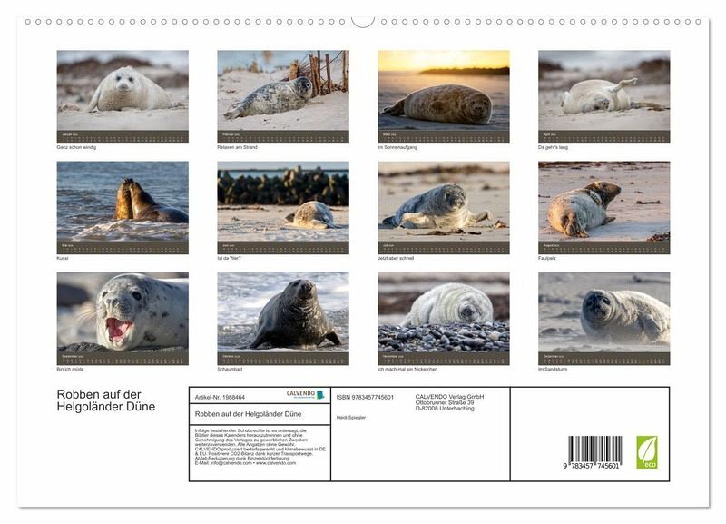 PREMIUM-LINIE - Brillanter Fotokalender mit 12 wunderschönen Motiven, Kunstdruck in Hochglanz in Museumsqualität.QUALITÄT - edle Materialien, stabile Rückwand mit 2 innovativen Einstecktaschen für eine optimale Präsentation an der Wand.NACHHALTIG - deutliche Abfallreduzierung durch bedarfsgerechte Einzelstückfertigung, umweltfreundliches FSC-zertifiziertes Papier, Produktion in Deutschland, klimabewusste Logistik.PERFEKTES GESCHENK - Kalender für Freunde und Familie, für Kinder und Erwachsene, jung und alt, zu Weihnachten, Geburtstag oder zwischendurch.Kegelrobben auf der Düne vor Helgoland von Autor(in): anneliese-photography