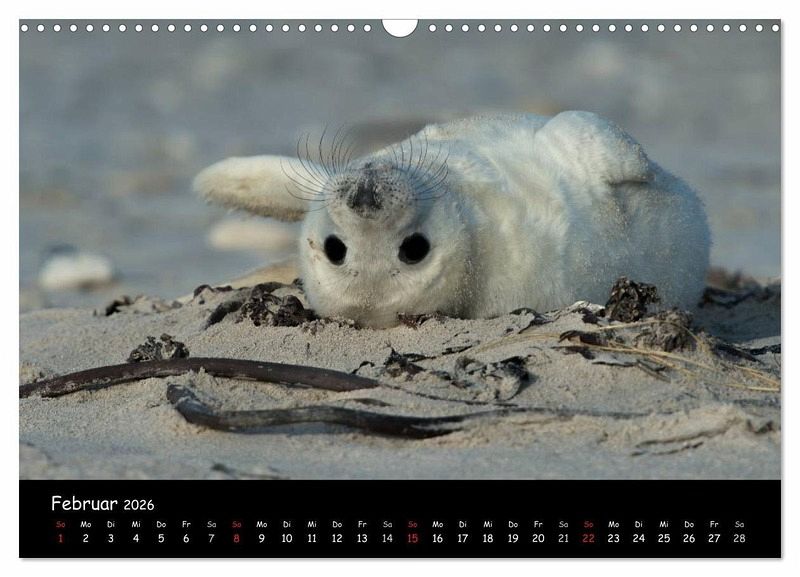 In den Wintermonaten November, Dezember und Januar bringen die Kegelrobben ihre Jungen auf der Nordsee-Insel Helgoland zur Welt. Der Monatskalender zeigt 13 ausgesuchte Fotos aus dem Leben der Robben