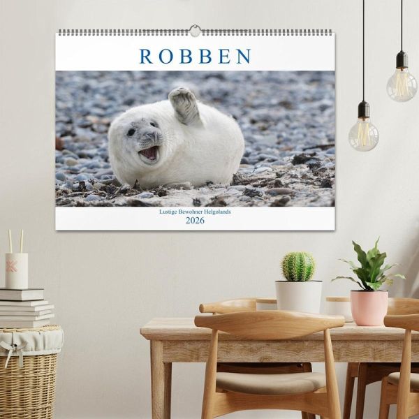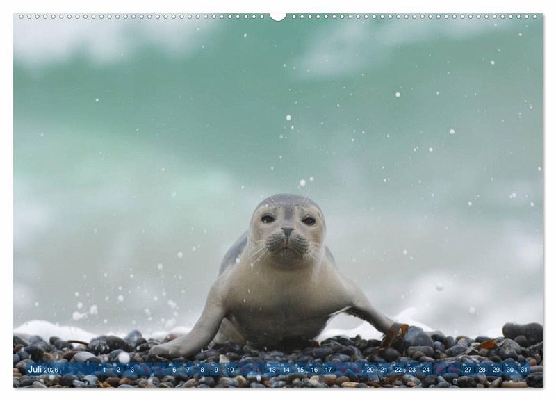 Nur wenige wissen, dass die größten Raubtiere Deutschlands auf der Helgoland heimisch sind. Auf der "Düne" können sie das gesamte Jahr beobachtet werden. Besonders lustig sind im Winter die knuddeligen, weißen Robbenbabys. Die Kalenderbilder zeigen die Tiere in ihrem natürlichen Lebensraum.