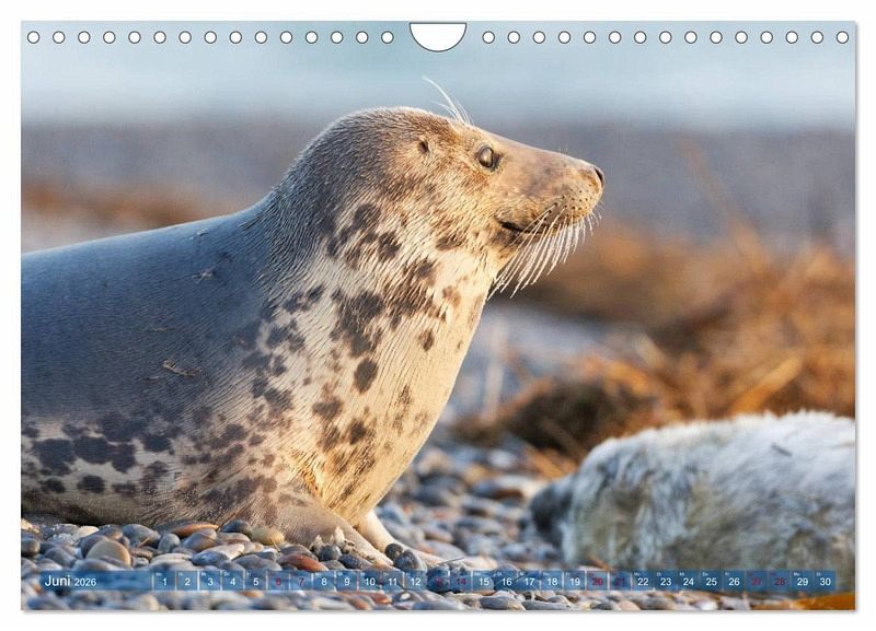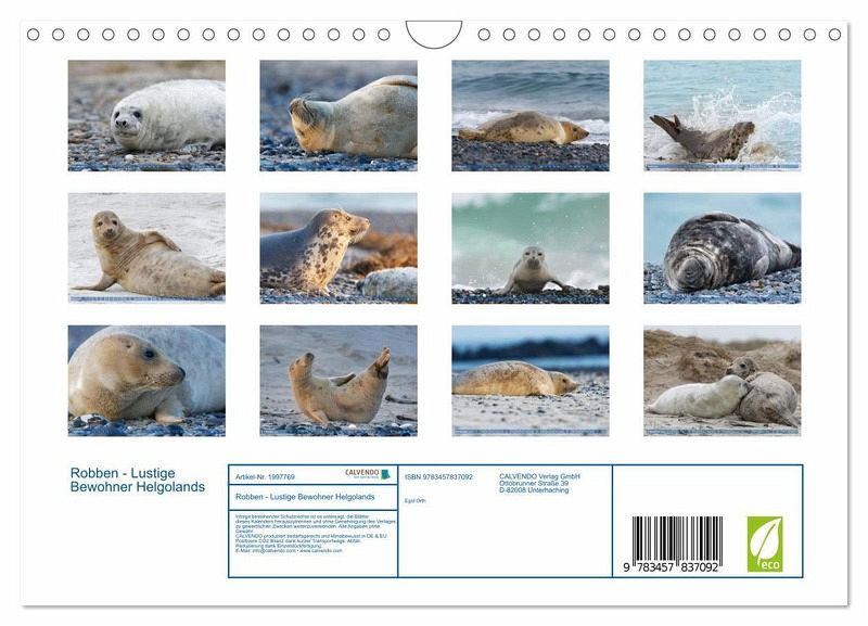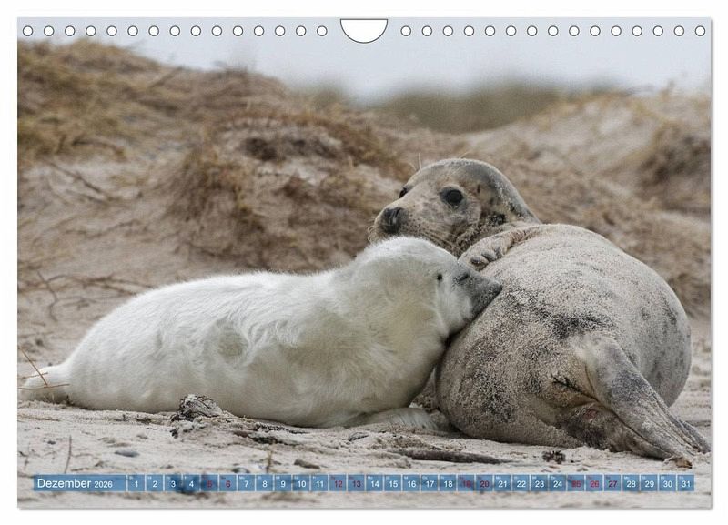 Nur wenige wissen, dass die größten Raubtiere Deutschlands auf der Helgoland heimisch sind. Auf der "Düne" können sie das gesamte Jahr beobachtet werden. Besonders lustig sind im Winter die knuddeligen, weißen Robbenbabys. Die Kalenderbilder zeigen die Tiere in ihrem natürlichen Lebensraum.