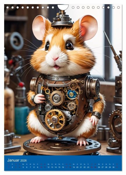 Tauchen Sie ein in die wunderbare Welt der niedlichen Roboterhamster! In unserem brandneuen Kalender erwarten Sie 12 einzigartige Monatsblätter, auf denen diese putzigen mechanischen Wesen in ihrer Werkstatt zu sehen sind. Jeder KI-generierte Roboterhamster ist ein Meisterwerk aus unterschiedlichsten mechanischen Bauteilen, liebevoll zusammengesetzt zu einem faszinierenden Gesamtkunstwerk. Lassen Sie sich von ihrem Charme verzaubern, während sie in ihrer Werkstatt voller kreativer Energie agieren. Ob als Geschenk für sich selbst oder für einen lieben Menschen - dieser Kalender ist ein Must-have für alle Fans von Technik und Niedlichkeit. Sichern Sie sich jetzt Ihren Kalender und lassen Sie sich Monat für Monat von den Abenteuern der Roboterhamster begleiten!